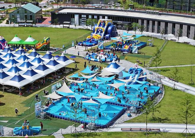 올해 물놀이장은 지난 7월16일부터 8월7일까지 약 3주간 운영됐으며 대형 슬라이드와 다양한 풀장, 수상·지상 장애물, 페달보트 등 풍성한 놀이시설뿐만 아니라 생존 수영 클래스, 버블파티, 보물찾기, DJ 파티 등 다채로운 체험 프로그램이 마련돼 방문객들에게 특별한 여름 추억을 선사했다.