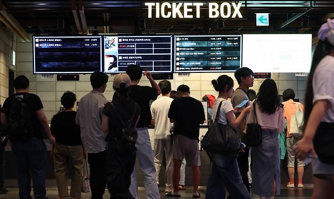(6000원 할인권 신청이 시작된 7월 25일 서울 용산구의 한 영화관이 관람객들로 붐비고 있다./사진=한국경제신문)