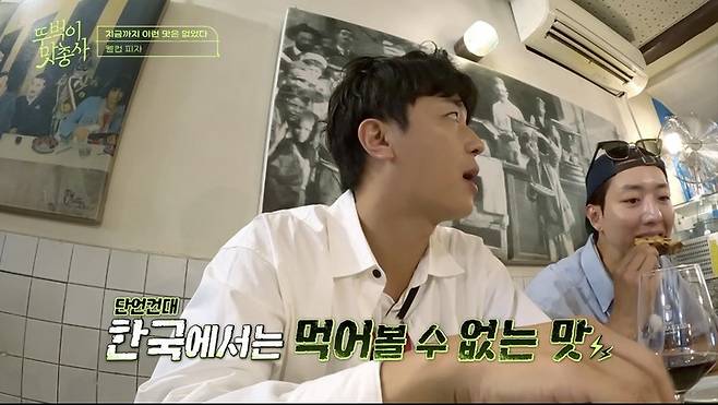 권율과 연우진은 웰컴 피자에 대해 "기본에 충실한 맛"이라고 평가했고, 이정신은 카프리초사 피자를 최고로 꼽았다. 이에 연우진은 "역시 같은 세대..."라며 공감했지만, 곧 "아... 진짜 킹받네"라고 너스레를 떨며 분위기를 띄웠다.