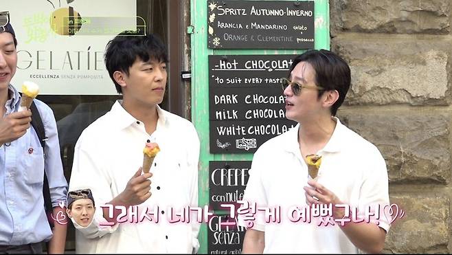이어 세 사람은 더위를 식히기 위해 찾은 수제 젤라토 가게에서 이탈리아 전통 젤라토를 맛봤다. 이정신은 "예쁜 표정하면 더 많이 주는 것 같다"며 팁을 공유했고, 실제로 점원이 다가와 비스킷을 서비스로 건네자 권율은 "아까 보는데 정신이가 너무 예쁘더라"라며 흐뭇한 표정을 지었다.
