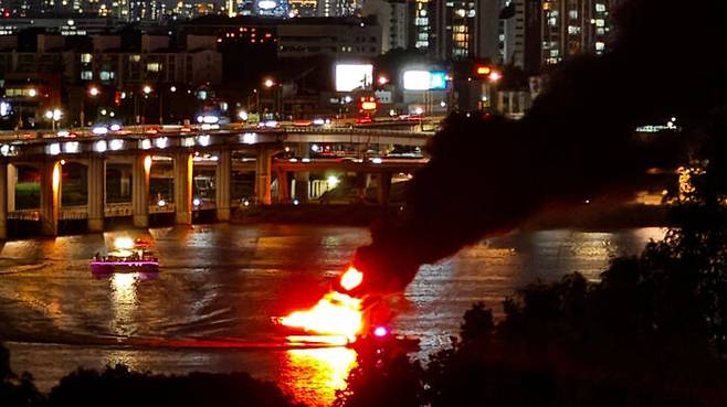 ▲ 반포대교 인근 한강에서 불붙은 요트
