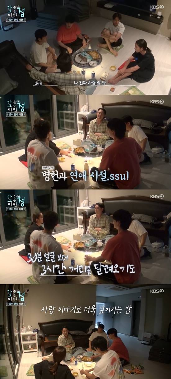 안재현은 "누나가 나중에 (여자친구 생기면) 무조건 보여달라고 했다"라고 밝혔다. 이민정은 "나 진짜 사람 잘 본다. 옛날에 드라마 할 때 내가 지방에 있으면 오빠가 30분 얼굴 보러 3시간 오고 그랬다. 나를 보러 3시간 달려 오지 않는, 그 정도의 열정이 없으면 '굳이?'였다"라며 이병헌과의 러브스토리를 공개했다.