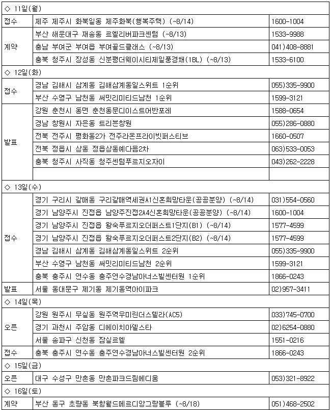 아울러 다음 주 견본주택(모델하우스)은 서울 송파구 신천동 '잠실르엘'(사이버), 경기 과천시 주암동 '디에이치아델스타', 강원 원주시 무실동 '원주역우미린더스텔라' 등이 개관할 예정이다.