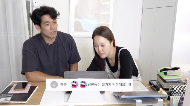 그러던 와중 “남편놈이 설거지 안 한대요”란 댓글에 정석원은 "해야죠"라고 대답했다. 하지만 이를 정석원에게 한 말이라고 순간 오해한 백지영은 "누가 남편놈이라 그랬어?"라며 살기(?) 눈빛을 보냈다.