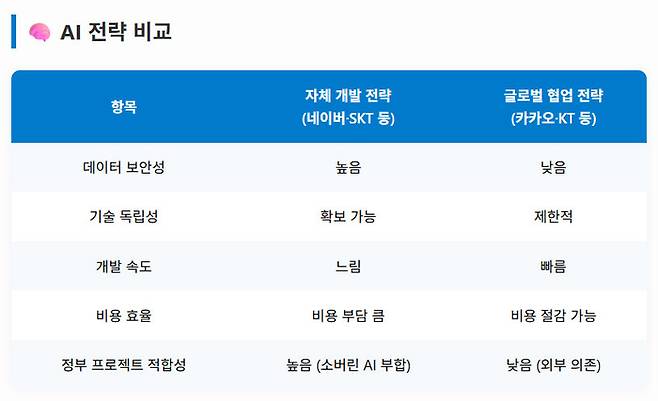 다만 IT업계 일각에서는 카카오와 KT가 일정한 수준의 자체 AI 모델을 보유 중이고 오픈소스 공개를 통해 생태계 확장에 기여하고 있는 만큼, 글로벌 협업을 선택했다는 이유로 당락이 갈렸다고 해석하는 것은 무리가 있다는 목소리가 나온다.