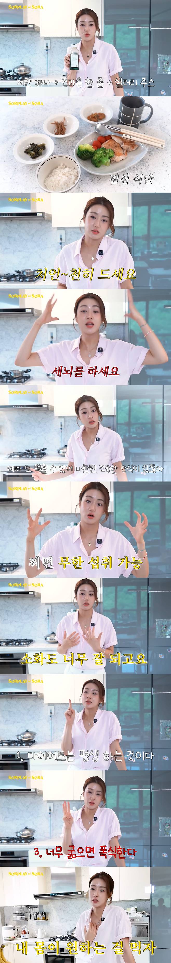 9일 유튜브 채널 'SORPLAY of SORA 소라의 솔플레이'에는 "모두가 할 수 있는 평생 가능 식단"이라며 영상이 게재됐다.