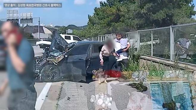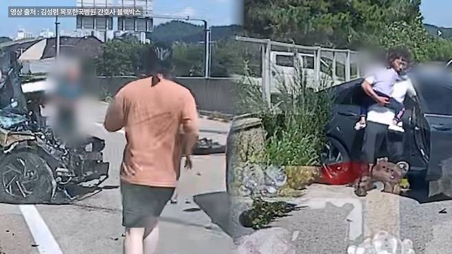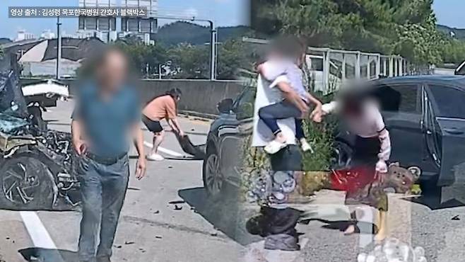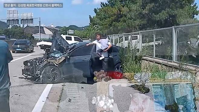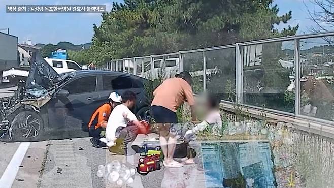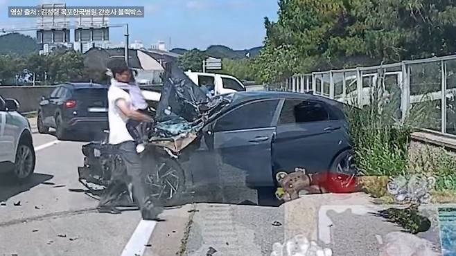 “아이를 안고 있는 상태에서 한쪽 손으로 차량 문을 밀고, 다리를 옆으로 젖히고 히다 보니까 딱 나올 수 있는 공간이 생기더라고요. 구조 중에 의식이 조금씩 회복이 돼서 움직일 수 있겠냐고 질문하니까 몸을 움직이시더라고요”