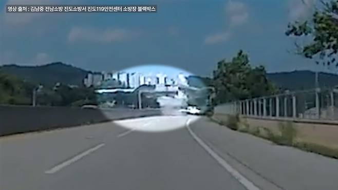 “블랙박스를 확인해 봤는데 화면으로는 좀 잘 안 나오는데 … 같이 이렇게 ‘쾅’하고.. 하면서 차가 많이 막 날아갔다고 표현을 해야 하나...”