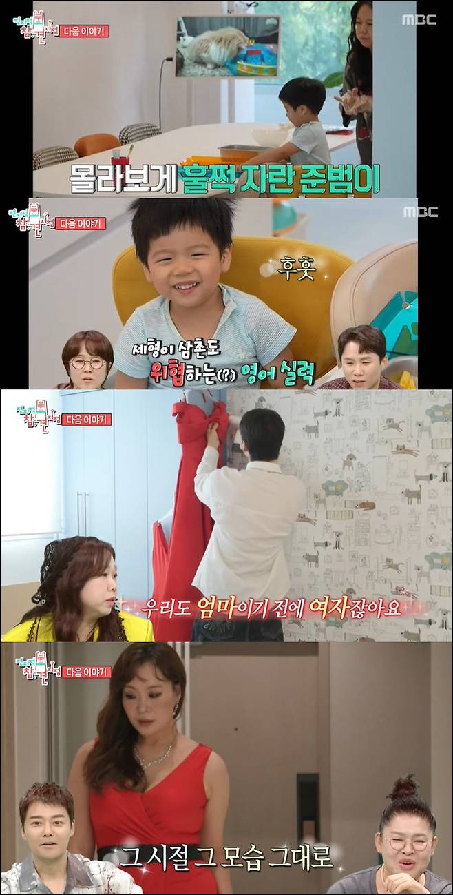 홍현희 제이쓴 부부의 아들 준범이는 훌쩍 자라 어린이가 됐다. 영어로 척척 답하는 것은 물론 홍현희가 "레드(red)가 영어로 뭐냐"고 묻자 "레드는 레드가 영어잖아"라고 말할 정도로 똑부러지는 모습으로 감탄을 자아냈다. 이에 송은이는 "세형이보다 영어를 잘해"라고 놀랐고 양세형도 "확실히 잘한다"고 인정해 웃음을 안긴다.