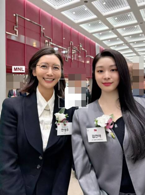 공개된 사진에서 한성주는 김연아와 함께 행사장에서 카메라를 바라보며 포즈를 취하고 있는 모습이다.
