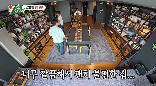 한강이 한눈에 보이는 거실에는 커다란 테이블과 의자가 놓여 있었고, 양옆에는 책으로 가득 찬 깔끔한 인테리어가 인상적이었다. 이를 본 김준호는 "여자 집보다 더 깔끔하다"며 감탄했고, "책도 이렇게 많냐"고 놀라움을 감추지 못했다.