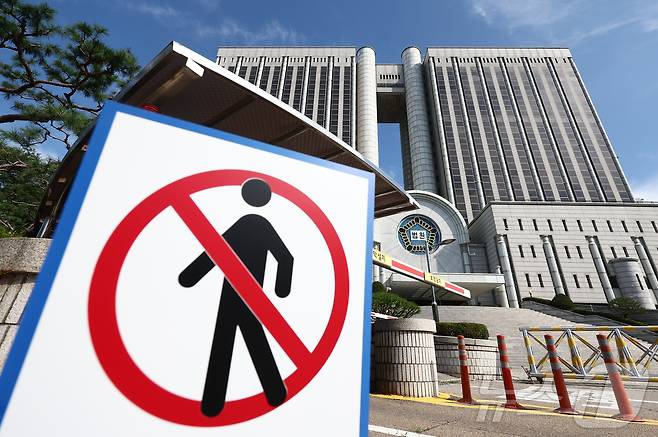법원에 따르면 윤 전 대통령의 내란 우두머리 혐의 재판이 열리는 오는 11일 오전 8시부터 자정까지 청사 북문(보행로·차량통행로)을 폐쇄한다. 이는 김 여사의 영장실질심사가 예정된 12일에도 적용된다. 2025.8.10/뉴스1