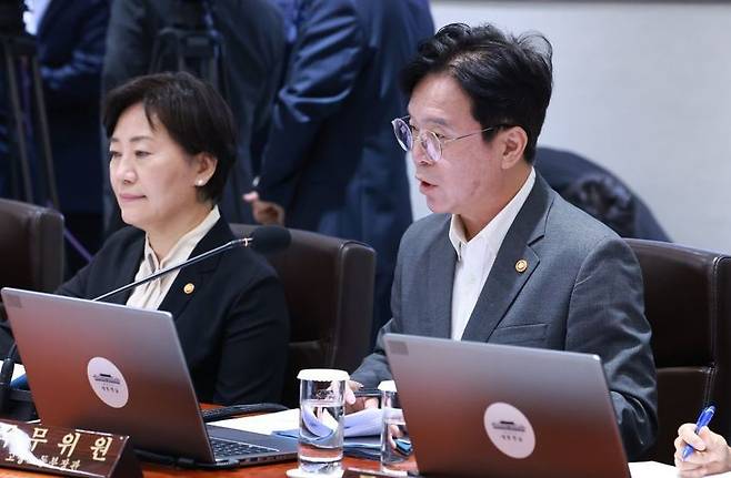 [김영훈 고용노동부 장관이 29일 서울 용산 대통령실 청사에서 열린 국무회의에서 산업재해 관련 발표를 하고 있다. (사진=연합뉴스)]