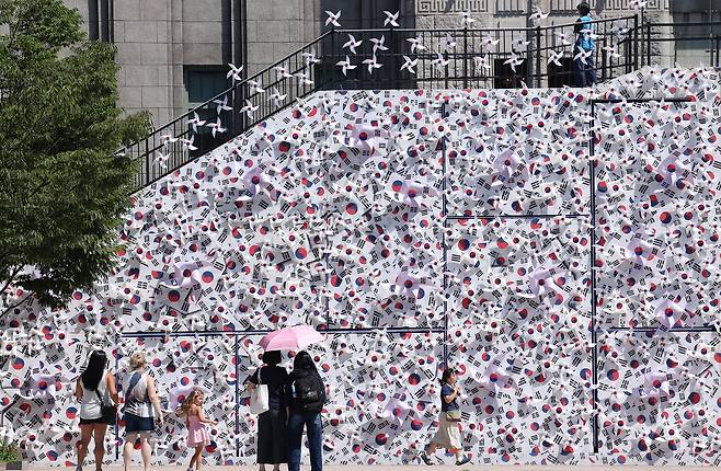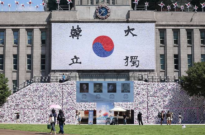 '광복 80주년' 서울광장에 태극기 언덕 설치 [한강로 사진관]