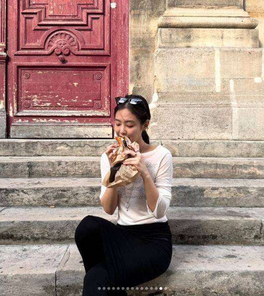 프랑스 파리에서 소탈한 모습으로 여행을 즐기는 제니의 모습이 담겨 있었다.