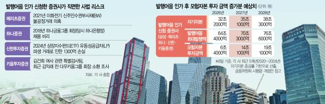증권사 발행어음 사업 인가 심사가 중단될 수 있다는 불안감 속에 내년 6조 원이 넘는 모험자본이 시장에 투입될 기회를 놓칠 수 있다는 우려가 확산되고 있다. 올해 5개 증권사가 인가를 신청했지만 사업과는 무관한 각종 의혹과 재판 등 사법 리스크가 발목을 잡기 때문이다. 이 때문에 금융 당국의 까다로운 인가 심사가 새 정부가 강조하는 자본시장 활성화를 위한 혁신 기업 지원 확대 기조에 역행하고 있다는 비판이 나온다.