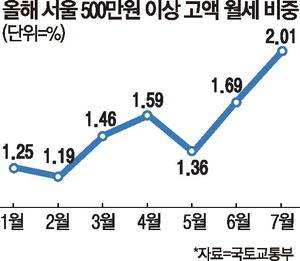 이 과정에서 월세가 전반적으로 상승하며 서울 주요 지역을 중심으로 월세 500만원이 넘는 초고가 계약 비중이 늘어나는 등 임대차 시장의 '월세화'가 가속화하는 양상이다.