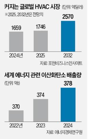 세계적인 이상고온으로 글로벌 HVAC 시장이 커질 것이란 전망도 나온다. 시장조사업체 포천비즈니스인사이트는 세계 HVAC 시장이 지난해 1659억달러(약 231조원)에서 2032년 2570억달러(약 358조원)로 54.9% 성장할 것으로 내다봤다.