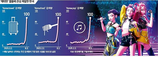 10일 구글의 글로벌 이용자 데이터에 따르면 '한국 음식'과 '한국 라면' '설렁탕' 등 케데헌에 등장하는 주요 한국 제품의 주간 검색량이 지난주(3~9일) 2004년 집계 이후 최다를 기록했다.