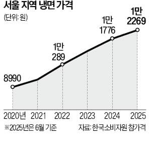 서울의 냉면 평균 가격은 2022년 1만289원으로 처음 1만원을 넘어선 뒤 2023년 1만1064원, 지난해 1만1776원으로 매년 상승했다.