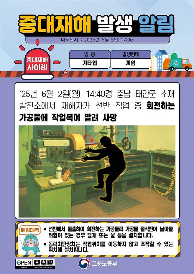 하지만 이렇게나 위험천만한 범용 선반에 대해 정부가 내놓은 안전수칙은 하나같이 부족하고 협소한 대책뿐이었다. 실제로 산업안전보건공단이 발간한 '선반 작업안전' 가이드를 보면 △복장 단정(옷소매를 단정히 할 것), △정리 정돈, △회전 종료 후 가공물 제거 등 초보적인 안전수칙만이 제시돼 있다. 과연 이것만으로 끼임 재해가 예방 가능한지 의문이다. 방호장치(안전덮개)도 없이 돌아가는 회전체, 김용균 사망사고 이후 이번에도 지켜지지 않은 2인1조 작업수칙은 이렇게 대책 없이 넘어가도 되는 건가.