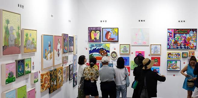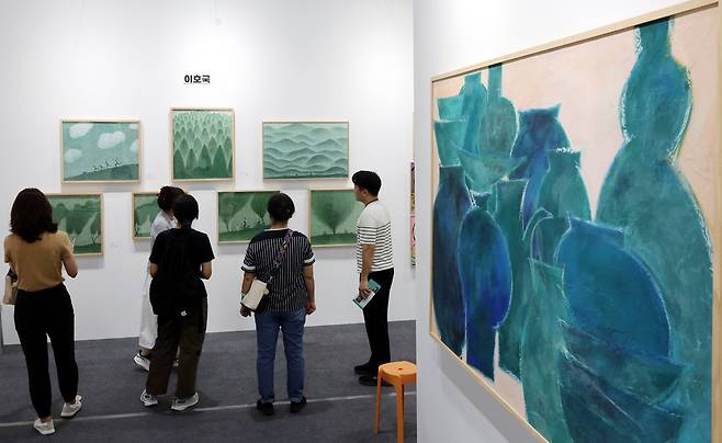 10일 서울 강남구 SETEC(세텍) 전시장에서 열린 제15회 뱅크아트페어(BANK ART FAIR)를 찾은 관람객들이 작품을 살펴보고 있다.