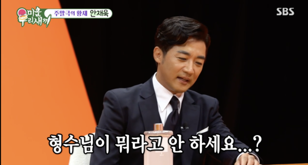 이날 서장훈은 "키스신 장면을 집에서도 보시지 않았나"라고 물었고, 이에 안재욱은 "제 아내도 직업이 배우다. 저도 제 아내와 무대에서 저렇게 키스하면서 사랑이 시작됐었다. 아내는 이해하는 편이다. 같이 보고 그러면 옆에서 보다가 씩 웃고 툭 치는 정도"라고 담담하게 말했다.