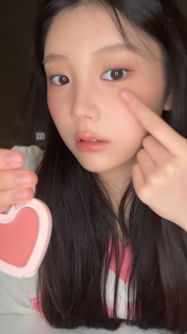 작은 손 안에 블러셔들이 다 들어가지 않을 정도로 꽤 많은 잇템들을 휴대해 다니는 원희! 그녀가 픽한 블러셔는 페리페라 맑게 물든 선샤인 치크 27, 롬앤 베러댄치크 애브리콧 밀크, 크리니크 치크팝 누드팝 이었는데요. 영상을 촬영한 당일에 바른 제품은 에이오유 보들 촉촉 크림 블러셔 였다고. 장난감스러운 하트 패키지가 소장 욕구를 자극하죠?