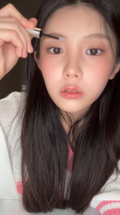 날렵하고 얇은 펜슬이 취향이라는 원희! 롬앤한올 샤프 브로우 로 눈썹 사이 사이 빈틈을 채워주고 스크류 브러쉬로 톡톡 빗어준 다음 키스미 헤비로테이션 컬러링 아이브로우 를 활용해 눈썹 컬러를 밝혀줍니다. 앞머리의 결을 쇽쇽 세워주는 것도 중요한 포인트라고.
