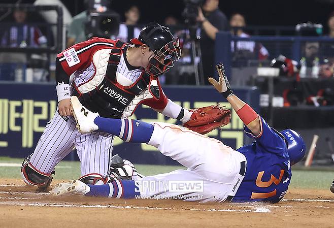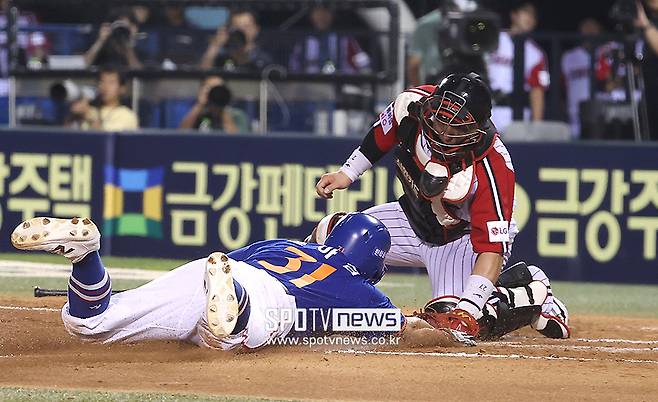 공 잡고도 먼저 태그하지 않은 LG 박동원, 안일한 플레이