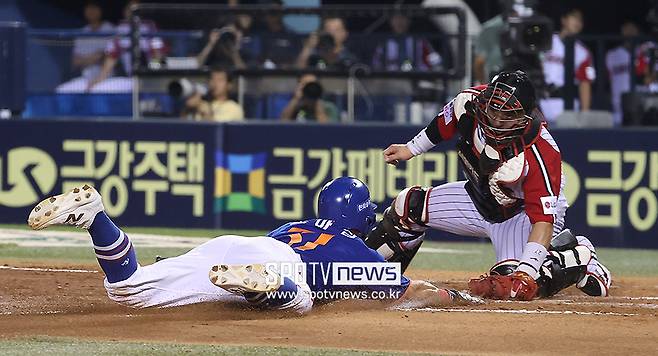 한화가 3-2로 앞선 7회초 1사 3루 상황에서 문현빈이 1루수 앞 땅볼을 쳤다. LG 1루수 천성호는 타구를 잡아 홈으로 송구했고, 공은 3루 주자였던 손아섭보다 먼저 도착해 포수 박동원의 미트에 있었다.