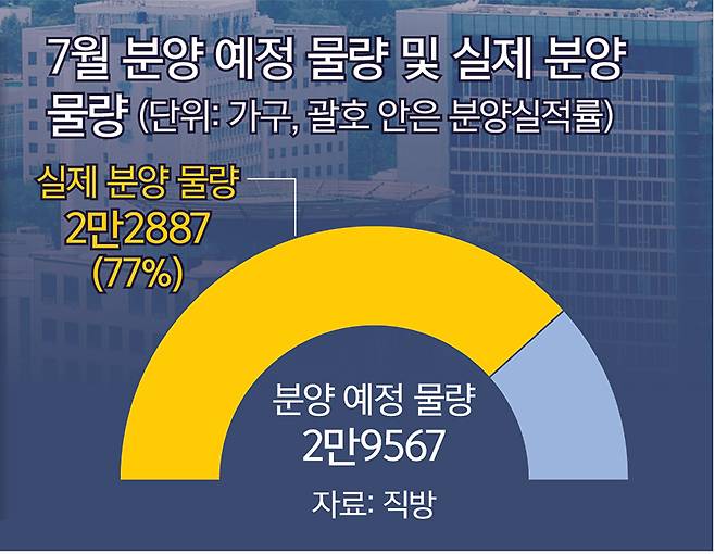 이달 분양시장에서도 최대 관심사는 6·27 대책의 여파다. 직방은 “고분양가이거나 자금 부담이 큰 단지는 청약 관망세가 나타날 수 있다”며 “건설사 역시 이러한 시장 분위기를 고려해 일정 조정이나 분양 전략 재검토에 나설 가능성이 있어 전체 분양 물량이 축소될 여지도 존재한다”고 내다봤다.