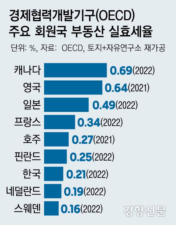 김경민 서울대 도시계획학과 교수는 “현재 한국의 주택 실효 보유세율은 0.1% 정도로 미국에서도 주택 보유세율이 가장 낮은 하와이주(0.3%)보다도 낮다”며 “초고가 주택에도 제대로 과세해 보유세 실효세율을 끌어올리는 게 시급하다”고 말했다.