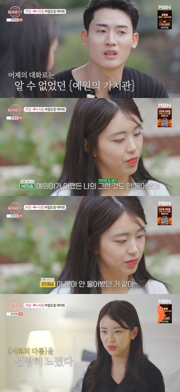 이희종은 전날의 대화로는 가치관을 알 수 없었다며 "그런 얘기를 아예 못 나눠서 찝찝했었고, 예원이가 어쨌든 나의 그런 것도 안 물어봤다"고 말문을 열었다.