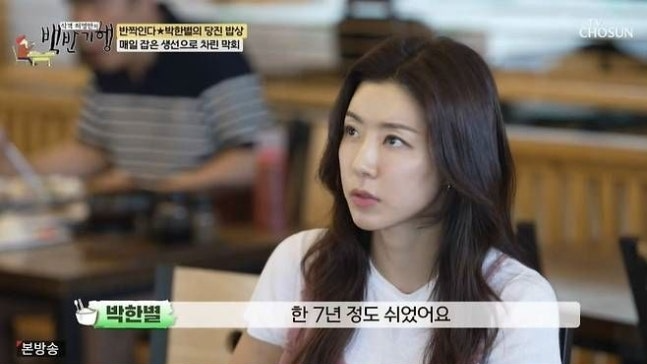 10일 방송된 TV조선 '식객 허영만의 백반기행'에서 박한별은 제주도에서 두 아들과 지낸 7년간의 근황을 전했다.