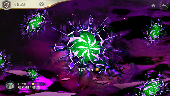최상위 난도 ‘검은 균열’은 패턴 설계가 핵심인 보스 구간이다. 캐주얼 비동기 PvP ‘기사 그랑프리’는 다른 유저가 세팅한 방어 덱을 공략하는 구조로, 짧게 들어갔다 나오는 한 판의 맛이 있다.