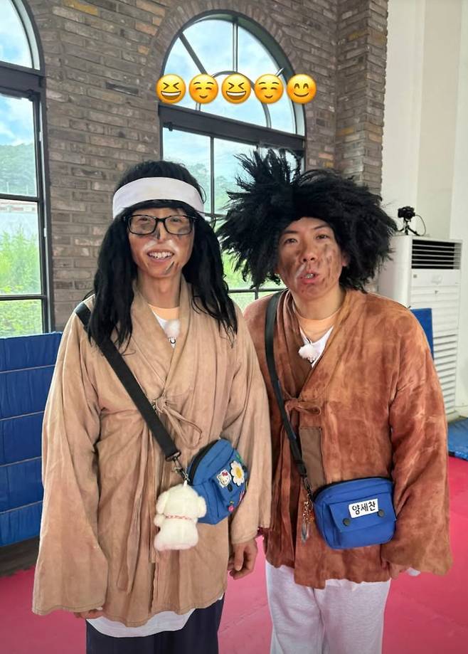 11일 배우 지예은은 자신의 SNS 계정에 웃는 이모티콘과 함께 한 장의 사진을 게재했다. 공개된 사진 속에는 거지 분장을 한 유재석과 양세찬의 모습이 담겨 있어 보는 이들에게 웃음을 안겼다.