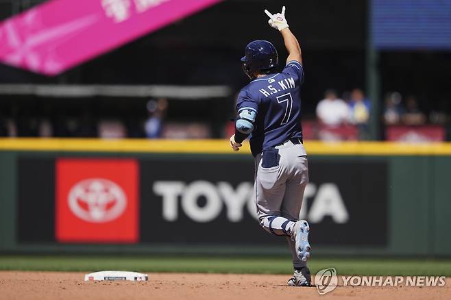 김하성(탬파베이 레이스)이 한 달 만에 홈런을 터뜨리며 장타력을 뽐냈다.