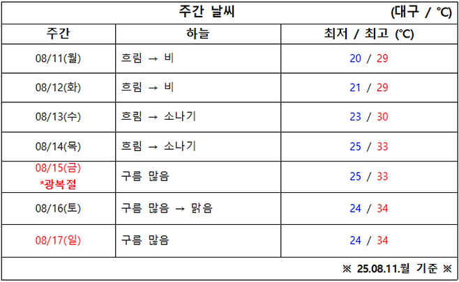 8월 3주 차 대구·경북 ‘날씨 체크’ 시작합니다.