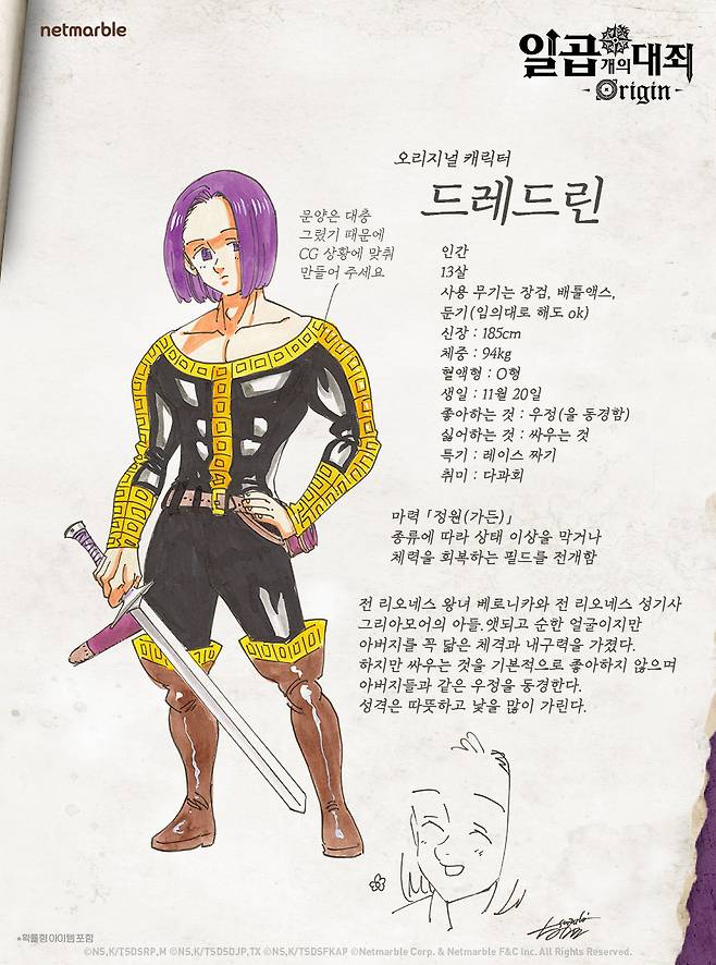 일곱 개의 대죄: 오리진, 원작자가 그린 오리지널 캐릭터 3종 공개