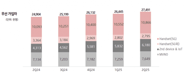 접속 매출의 지속적인 감소 아래 무선서비스 매출은 1조7천48억원을 기록하며 지난해 대비 1.6%, 직전 분기 대비 1.7% 증가했다.