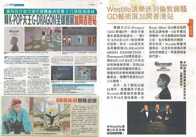 뿐만 아니라 현지 유력 매체인 둥팡르바오, 성보, 싱다오르바오 등은 'G-DRAGON MEDIA EXHIBITION : Übermensch' 홍콩 개최 소식을 대대적으로 보도하며 현지의 폭발적인 관심을 반영했다.