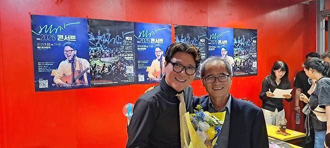 | ▲ 2025 백자콘서트에서 제자를 응원하며 다정한 모습으로 함께한 박영신 선생님 2025년 5월 백자 콘서트에 참석해 제자를 응원한 박영신 선생님. 민중가수 백자는 한국 사회 대표적인 싱어송라이터이다. 민중가수 백자는 교육부가 선정한 좋은 학교, 행복한 학교인 대안학교 <전인고등학교> 교가를 만들었다. |