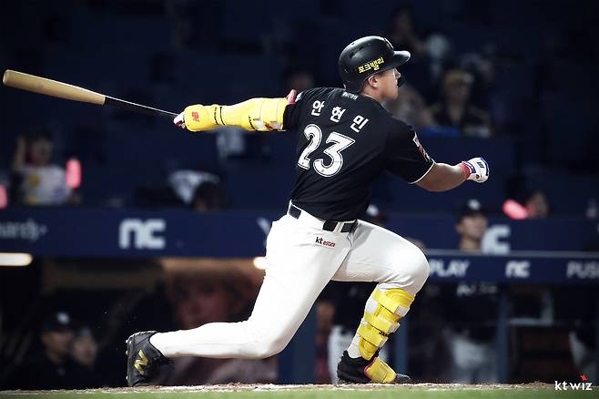안현민은 올 시즌 들어 잠재력을 폭발시키며 KT의 최고 스타로 자리매김했다. 11일 현재 81경기에 나서 287타수 100안타 18홈런 65타점 54득점 타율 0.348을 기록, 데뷔 첫 세 자릿 수 안타와 두 자릿 수 홈런을 기록 중이다. 최근 규정타석에 진입하며 타율 1위에 자리했다.