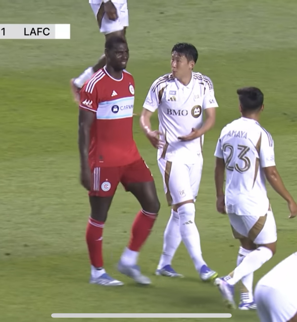 이날 손흥민은 테란과 충돌했다. 손흥민이 백태클을 당한 이후, 주심은 문제가 없다고 판단하고 경기를 진행했다. 이후 VAR 판독실과 소통해 해당 장면을 돌려봤고, 결국 PK를 선언했다. 그 과정에서 테란은 손흥민에게 항의했다. 그러자 손흥민도 흥분해 손짓으로 테란에게 무언가를 말했다. 이후 테란은 주심에게 경고를 받았다.