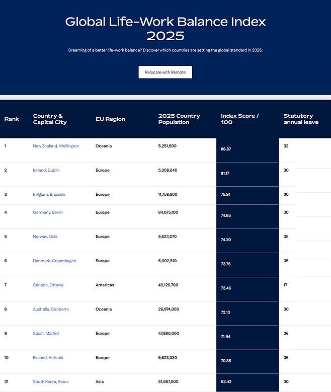 | ▲ 2025 글로벌 삶-일 균형 지수(Global Life-Work Balance Index) |