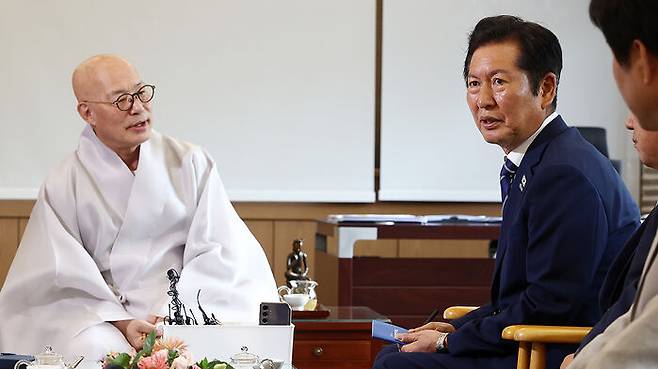 진우스님 "국민 전체를 보시길"…정청래 "머슴 노릇 잘하겠다"