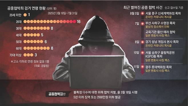 [단독]‘공중협박죄’ 검거하니 절반이 2030…“공포심리 조장해 쾌감”