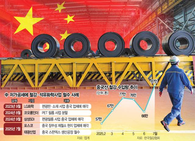 밀려들어오는 중국산 제품들에 철강 업체들의 국내 경영 사정 역시 악화하고 있다. 한국철강협회에 따르면 지난달 국내로 들어온 중국산 철강 수입량은 87만 톤으로 올 들어 최대 규모를 기록했다. 국내 주요 철강사들이 후판·열연 등 중국산 제품을 대상으로 반덤핑 제소에 나서고 실제 일부 품목에 대해 고율의 잠정 관세가 실시됐지만 중국산 철강 수입량은 오히려 증가한 셈이다. 다양한 우회 경로를 이용해 중국산 제품이 계속 국내로 들어오고 있는데 중국 업체들이 밀어내기를 위해 초저가를 감수하고 있는 것이 주된 배경이다.