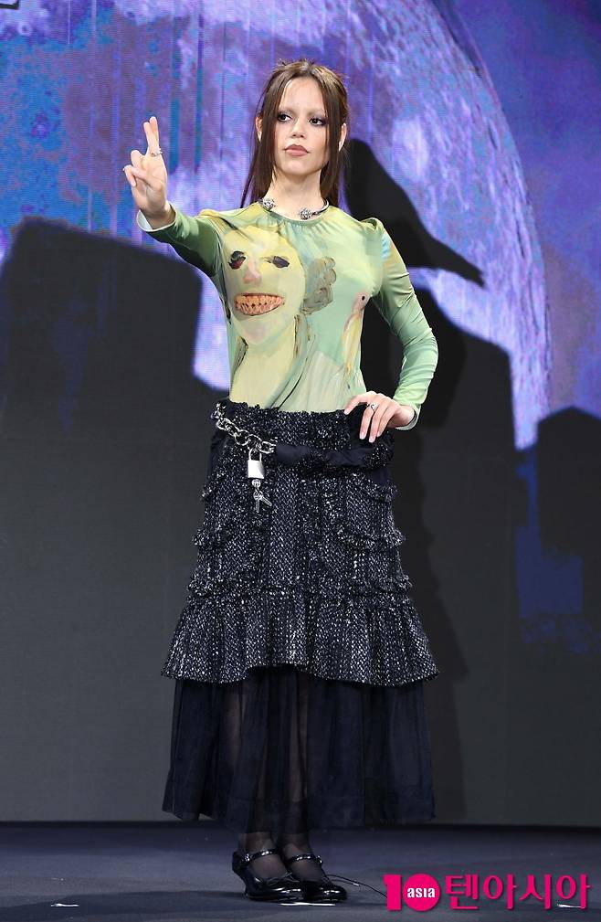 [텐아시아=조준원 기자]배우 제나 오르테가(Jenna Ortega)가 11일 서울 종로구 포시즌 호텔에서 열린 넷플릭스 시리즈 <웬즈데이> 시즌2 내한 기자간담회에 참석하고 있다.